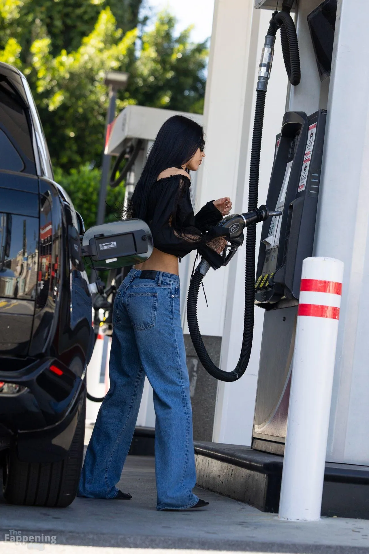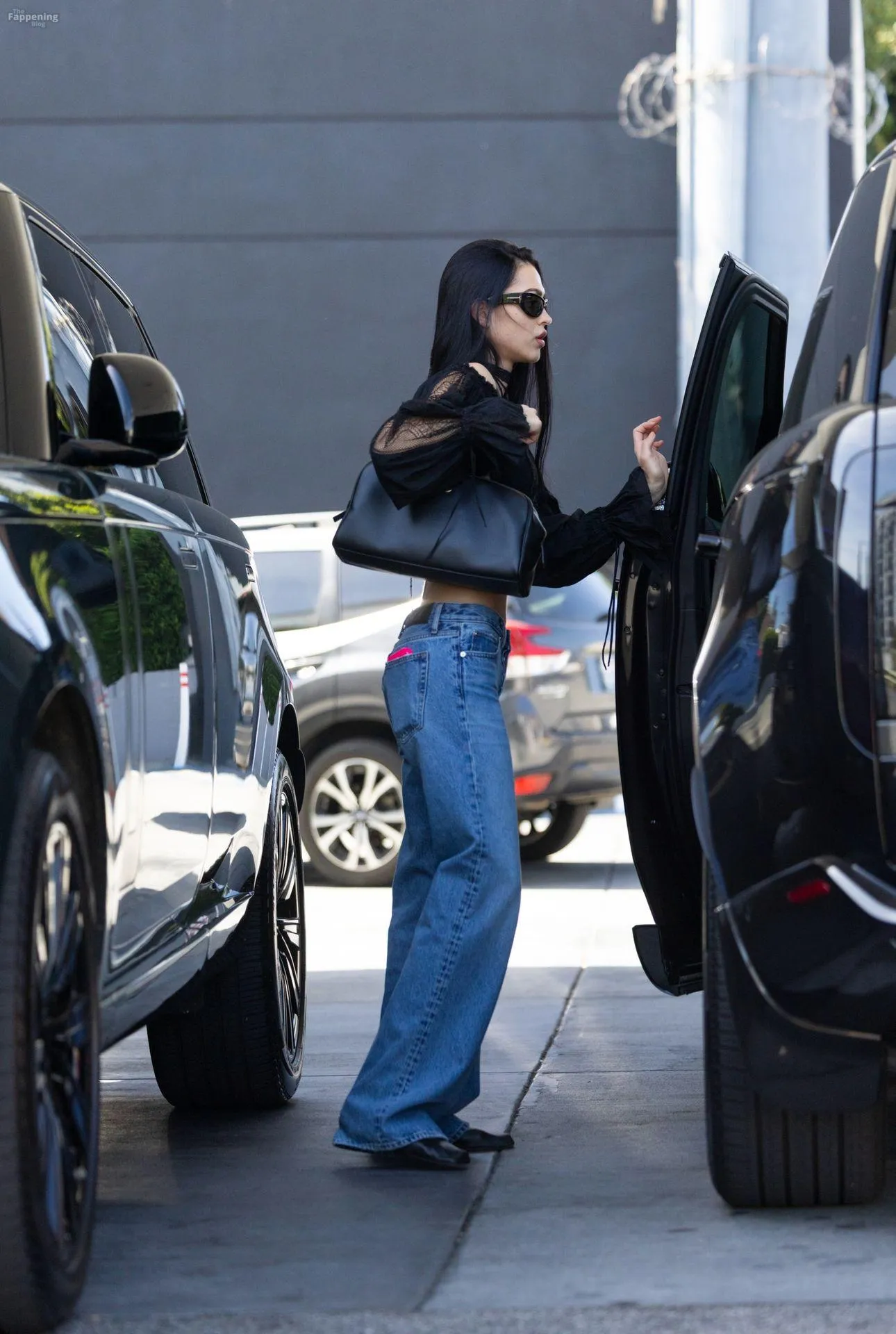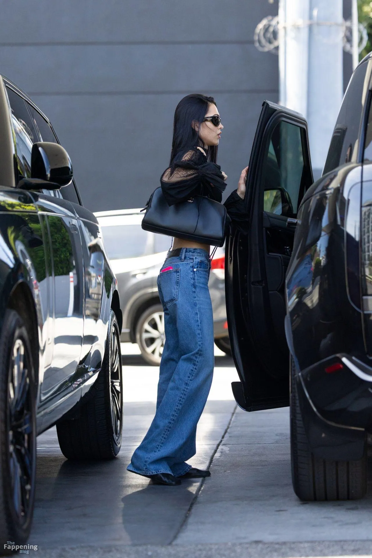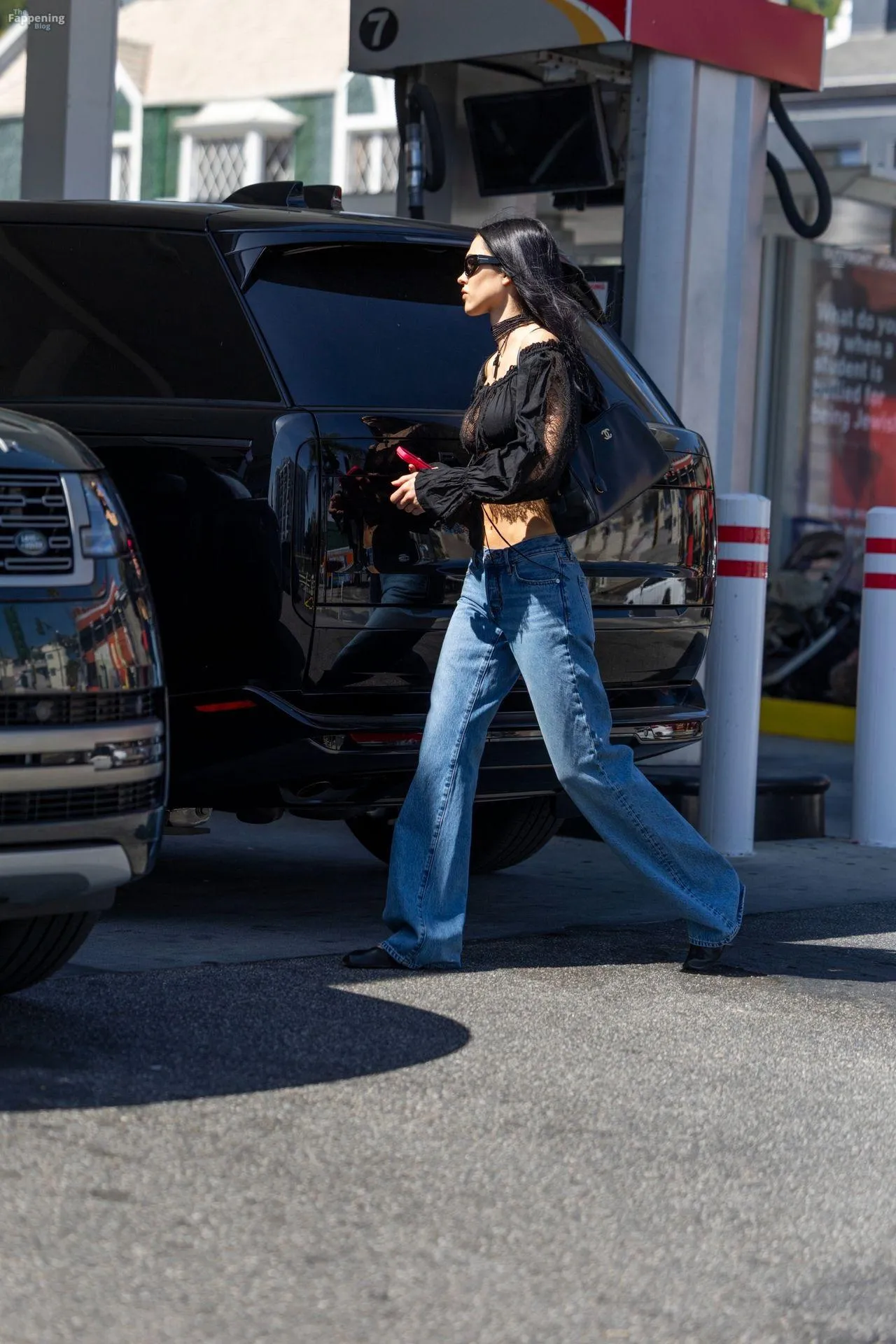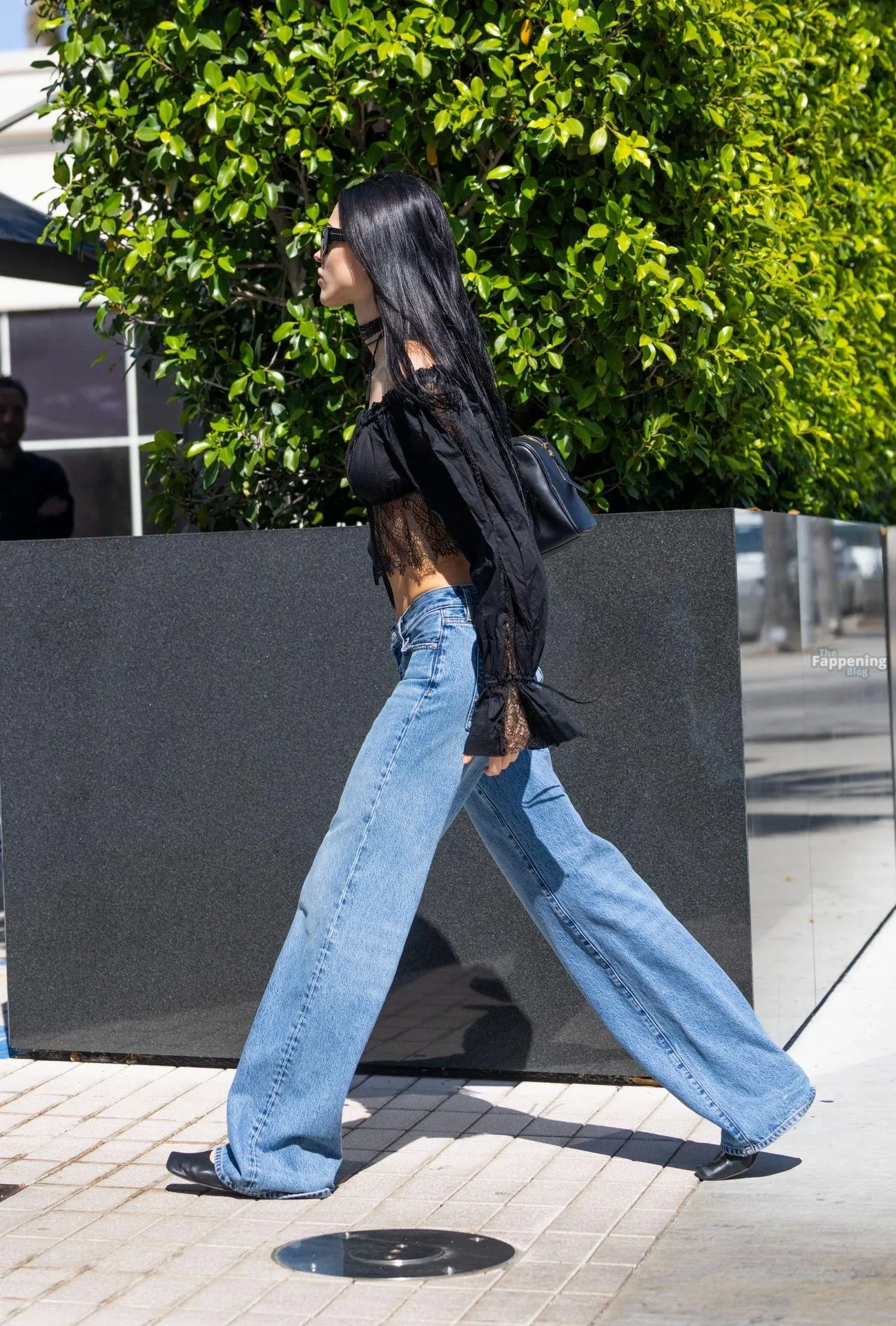 Amelia Gray Hamlin stepped out in a sheer lace top, flashing her tits and midriff and pairing it with low-slung denim and a striking cross necklace.