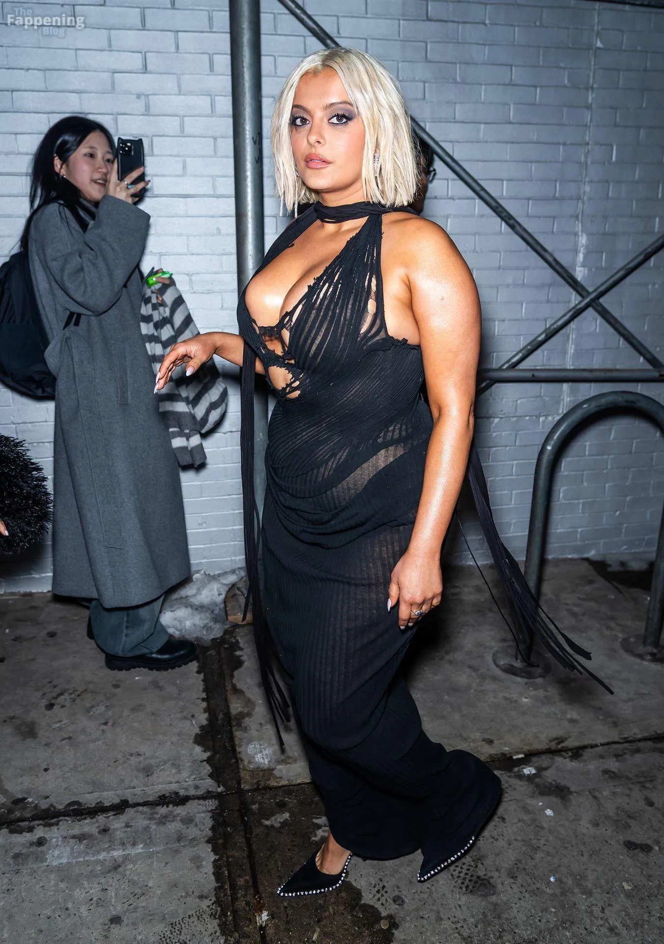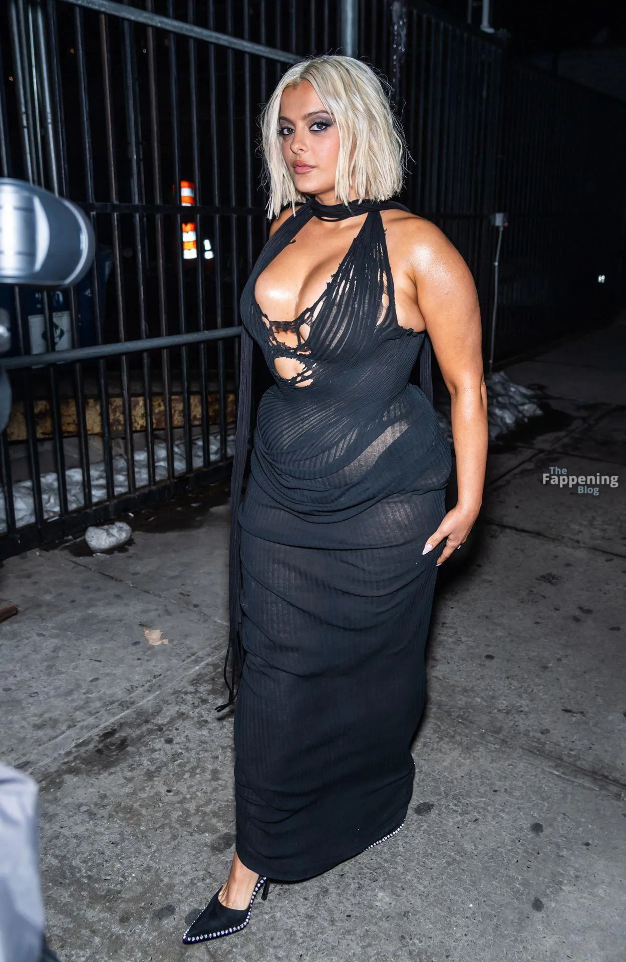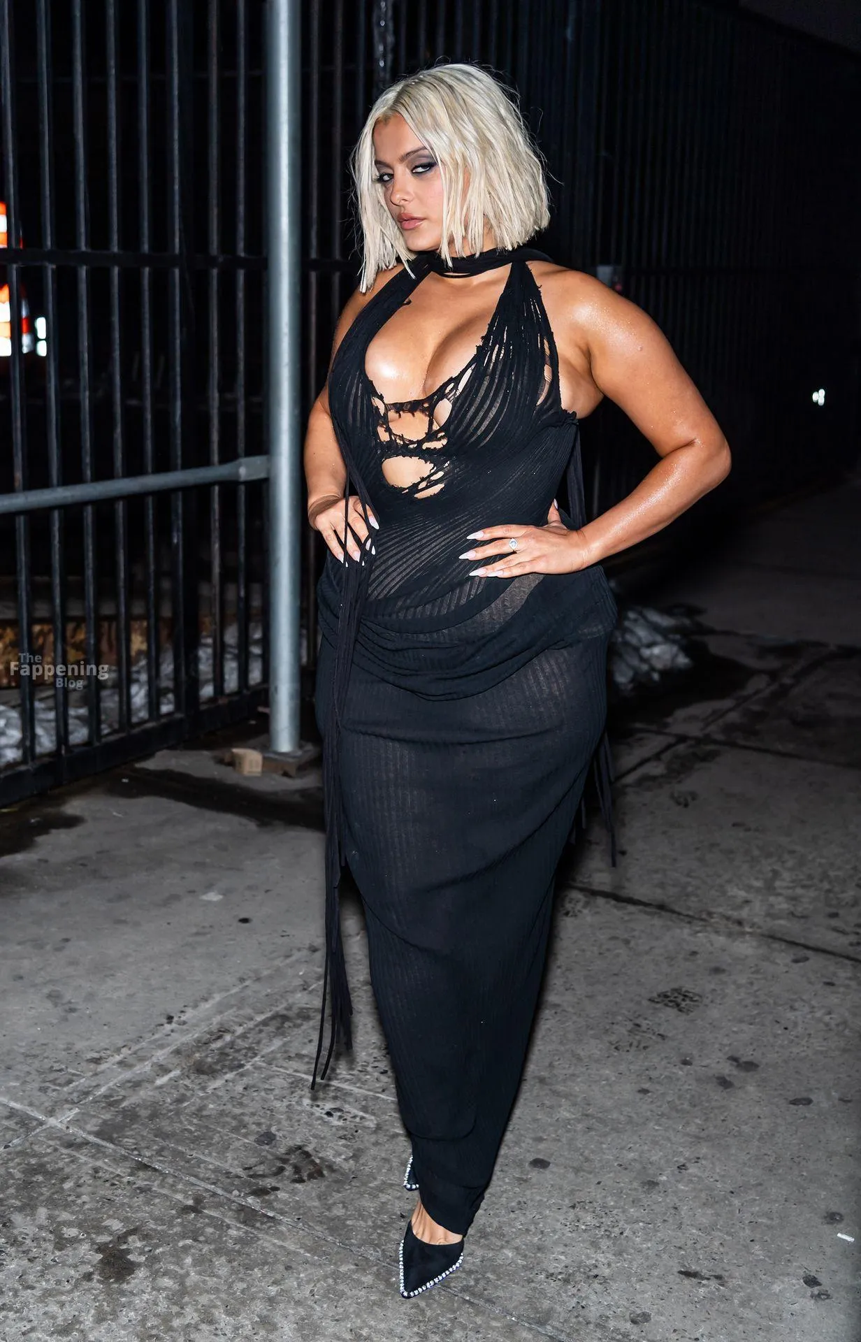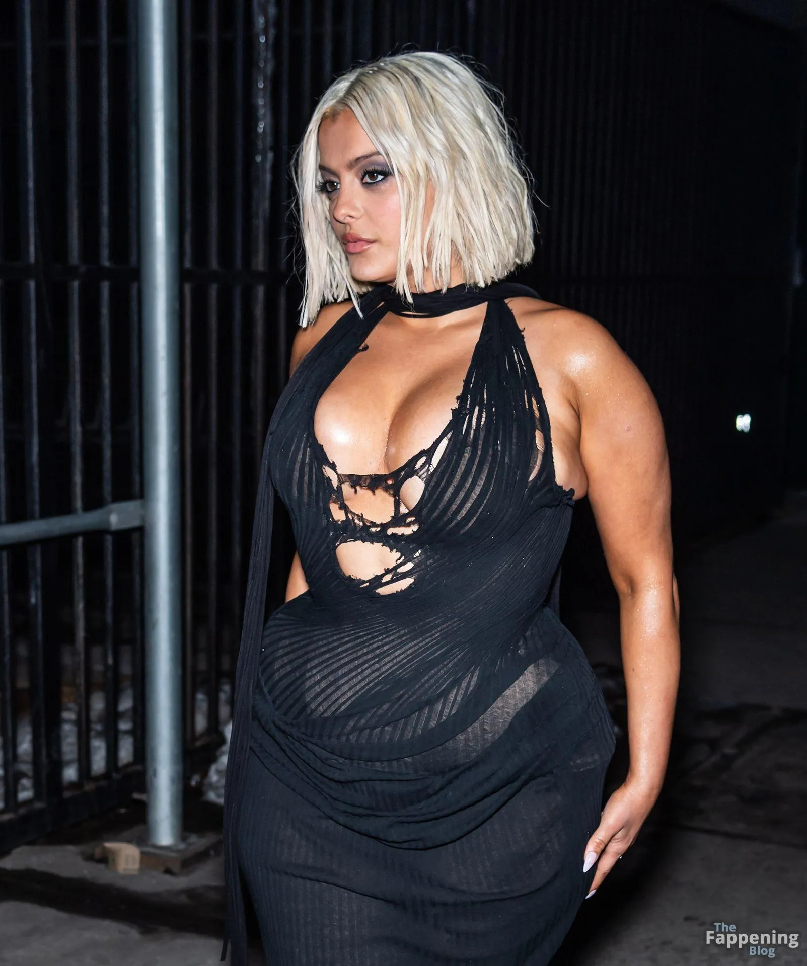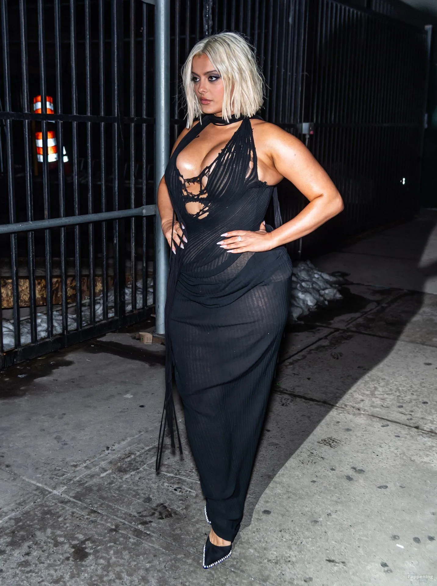 Bebe Rexha flaunts her sexy boobs and booty, wearin’ a sheer cutout Christian Cowan gown at NYFW 2026