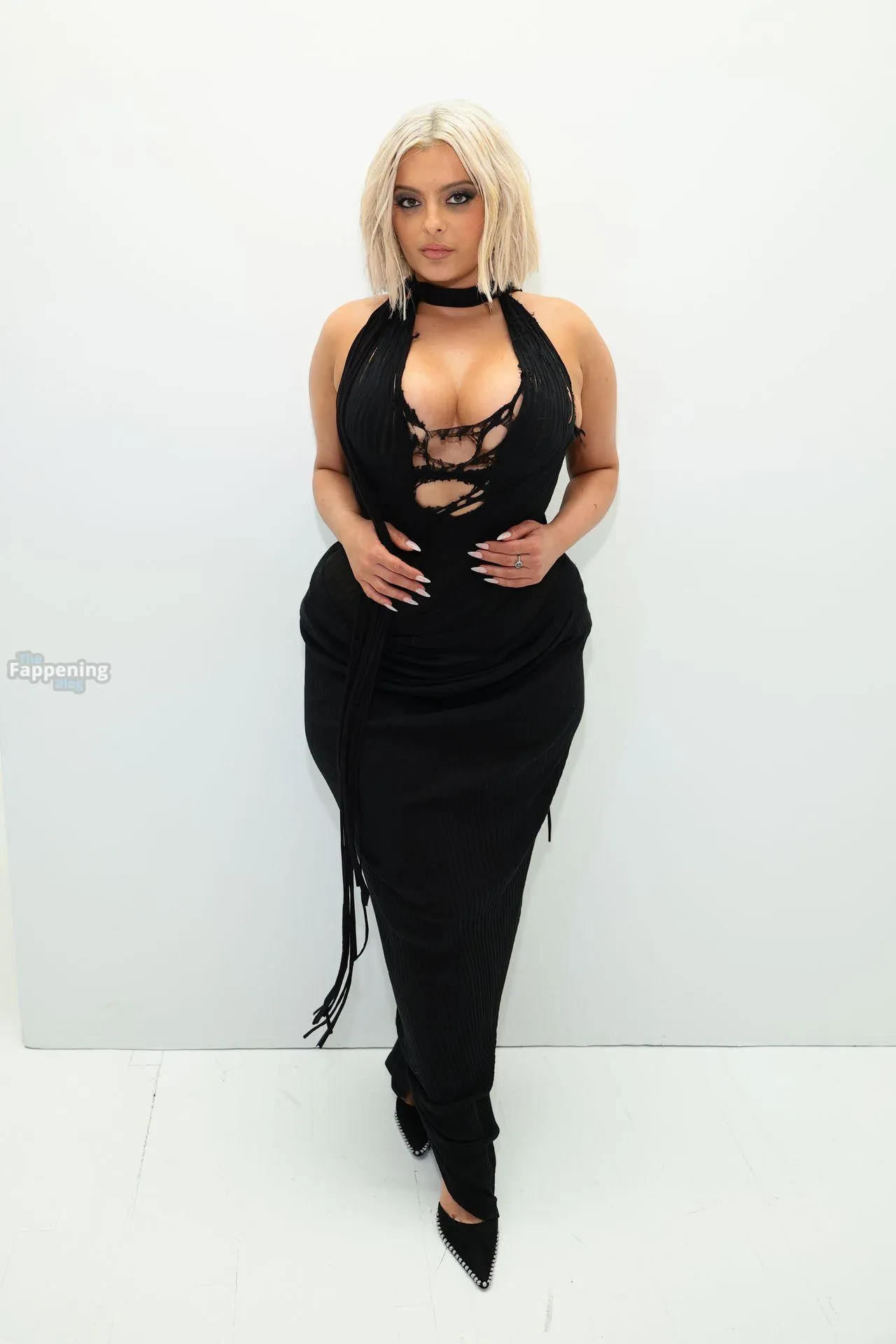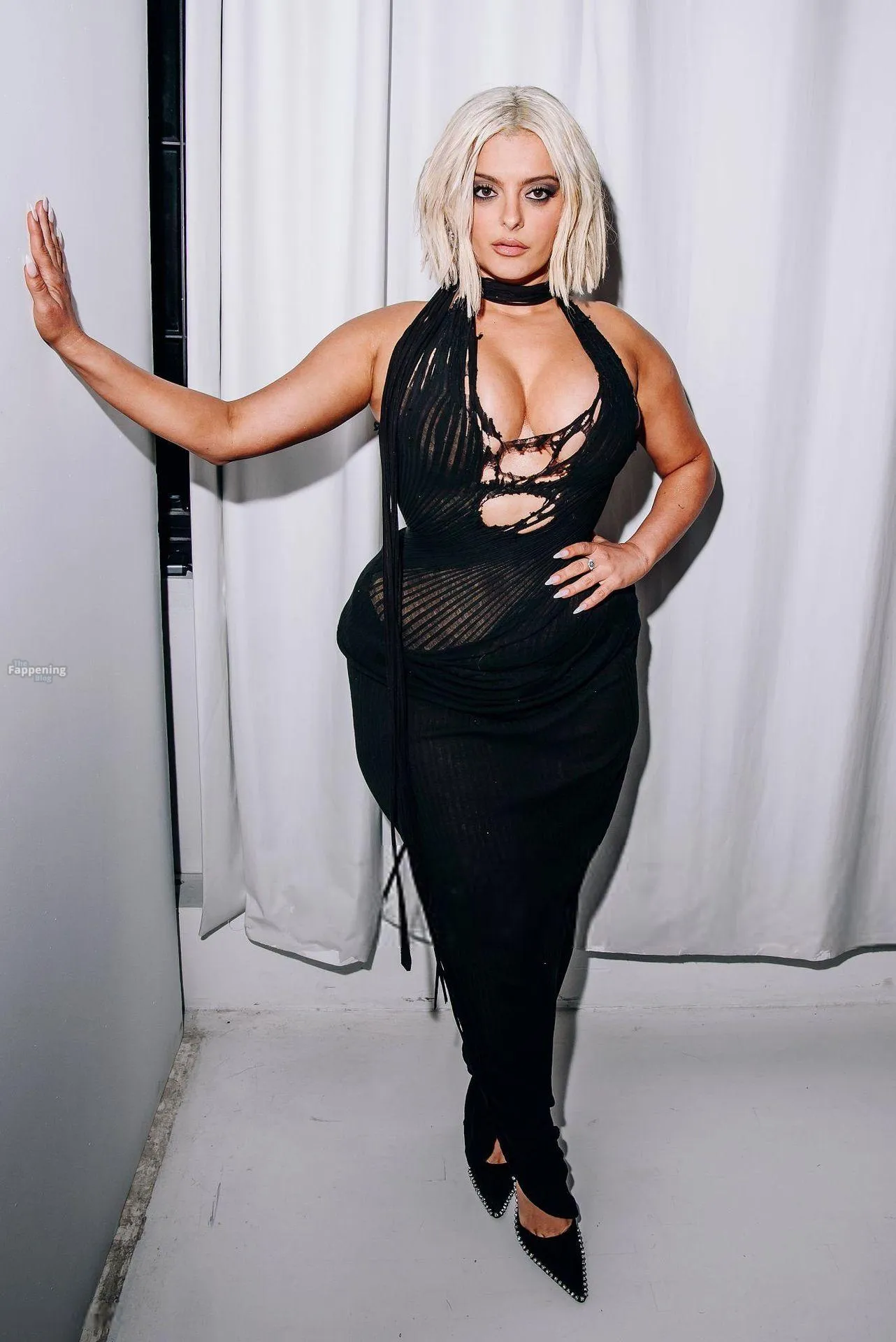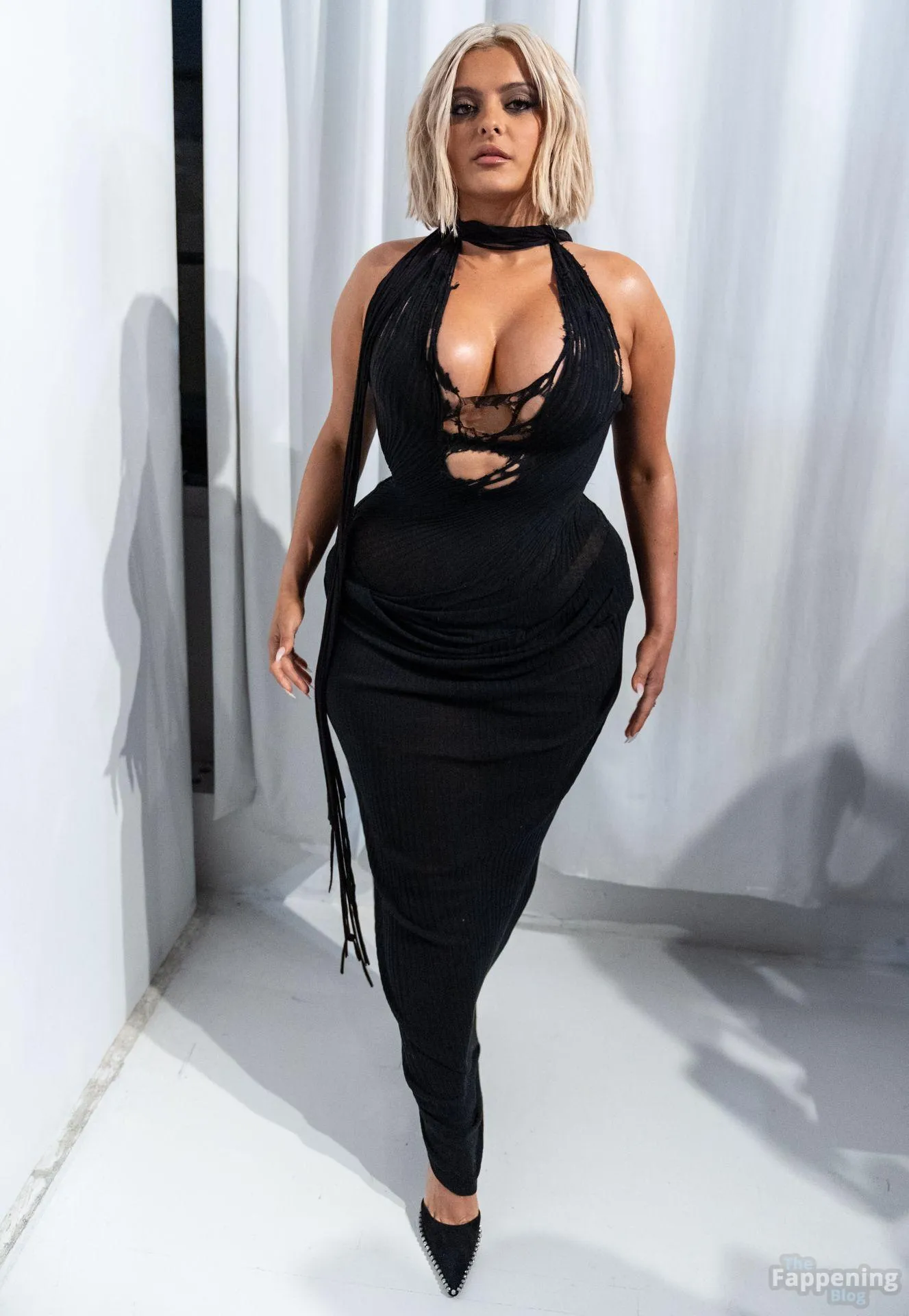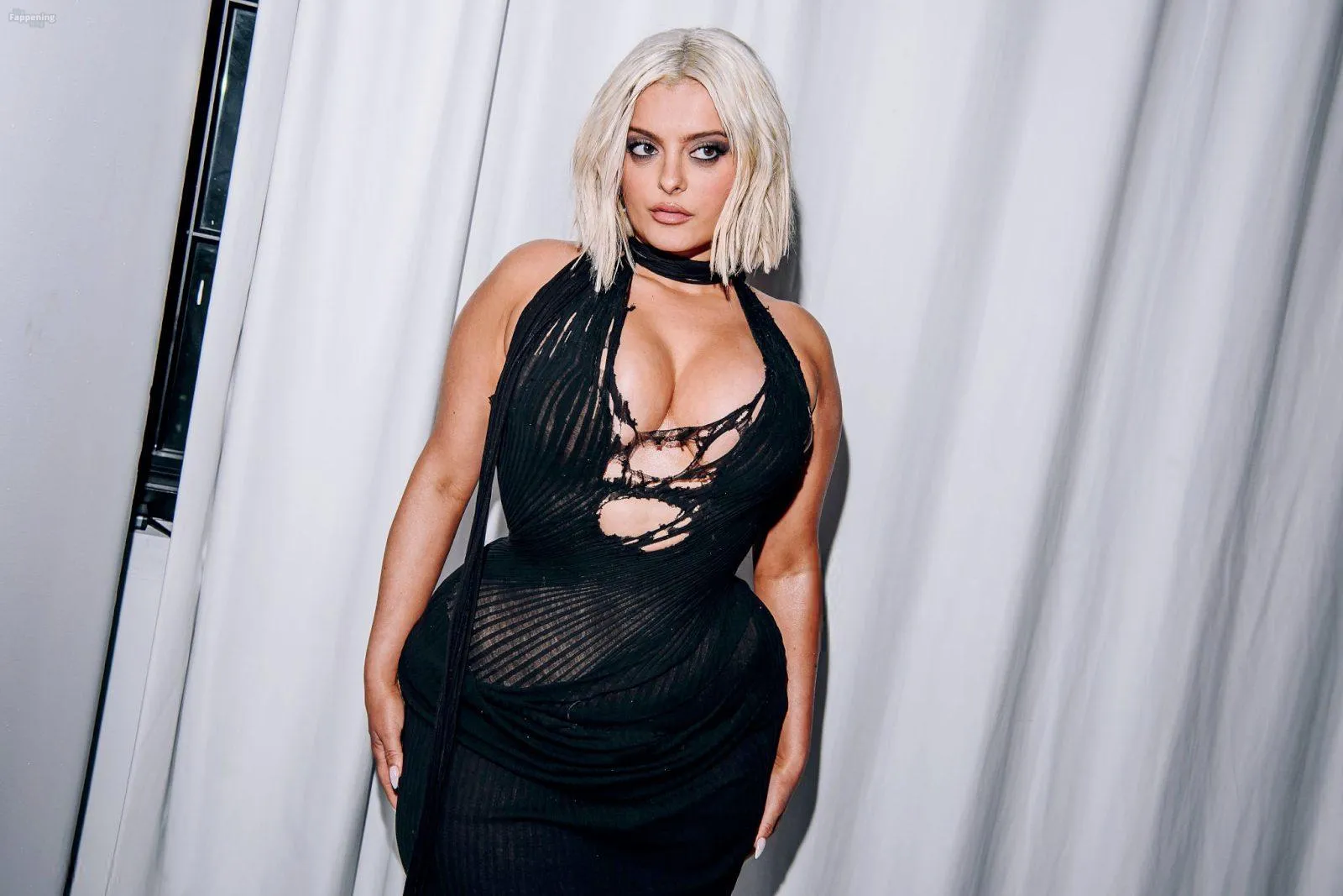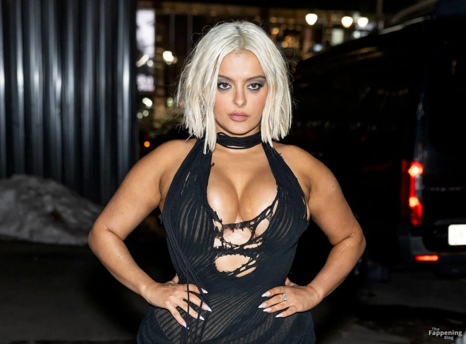 Bebe Rexha flaunts her sexy boobs and booty, wearin’ a sheer cutout Christian Cowan gown at NYFW 2026