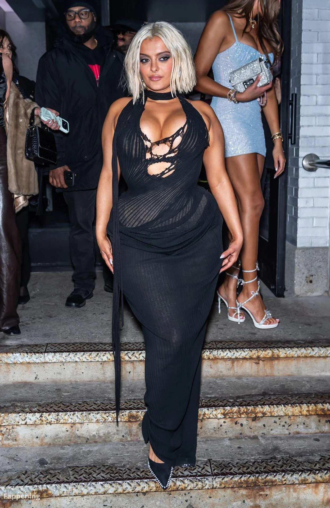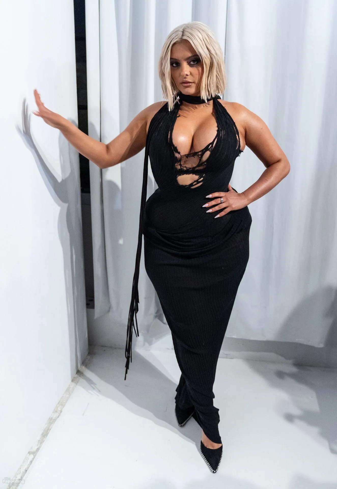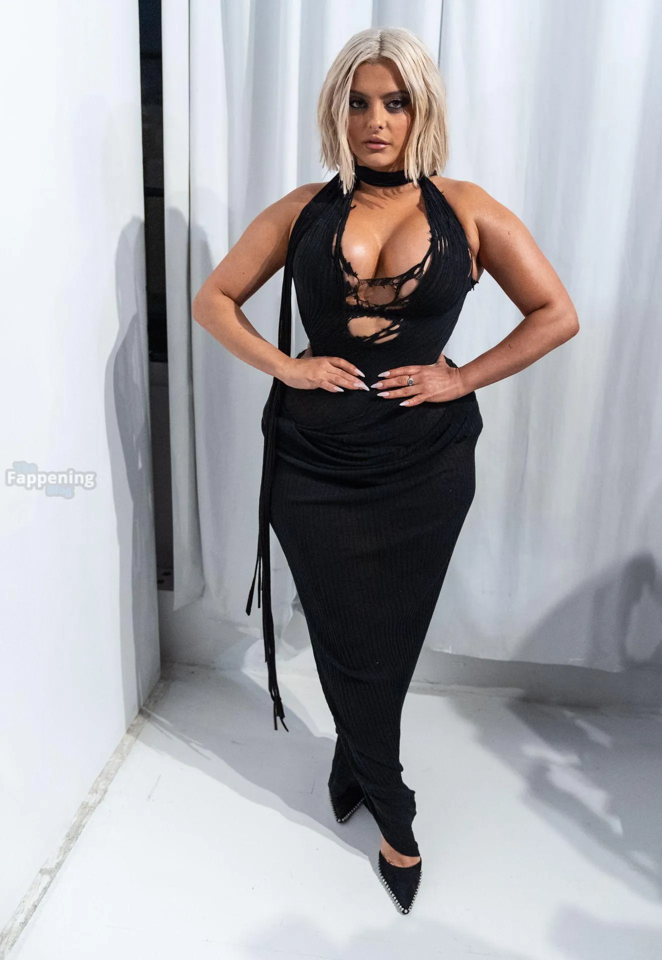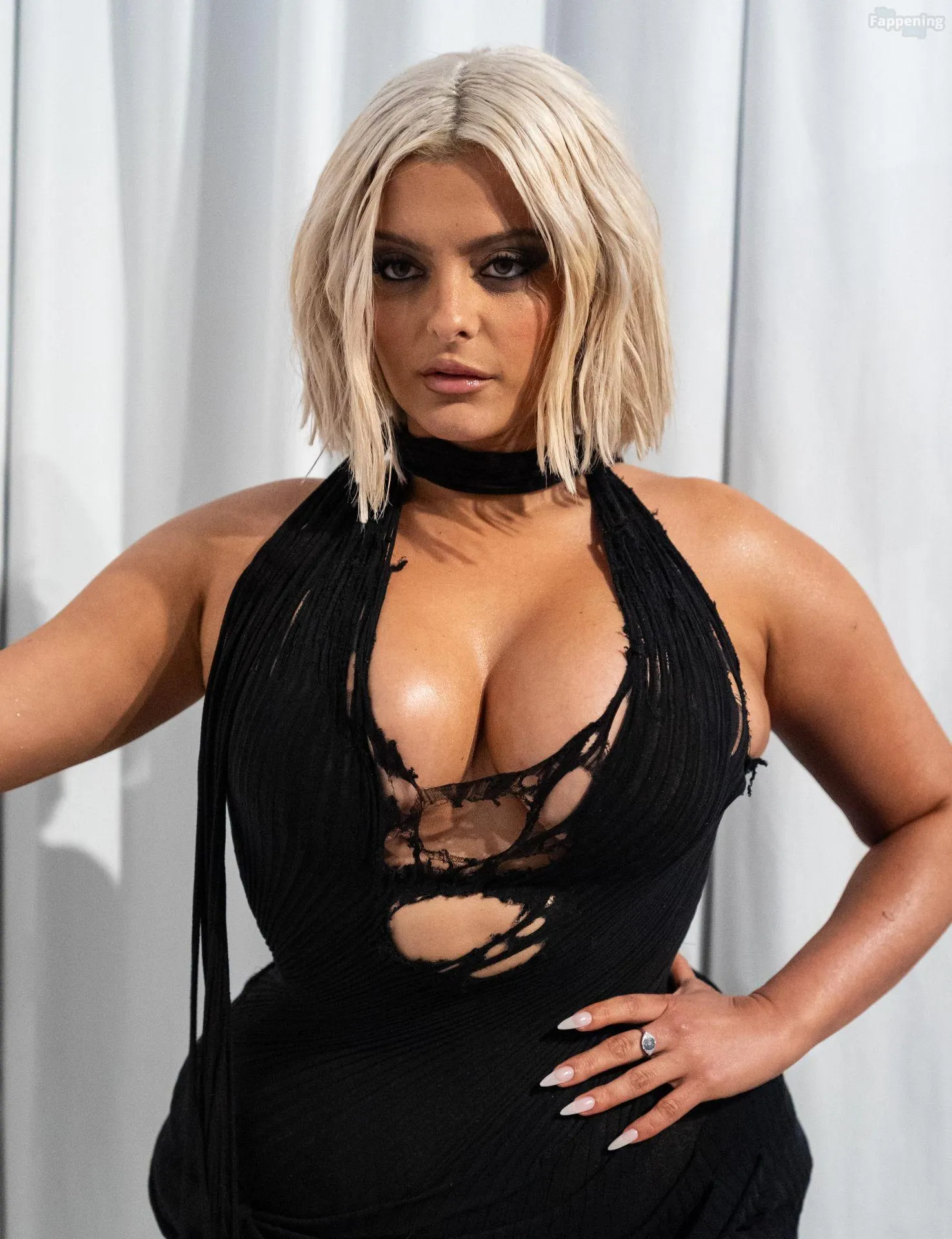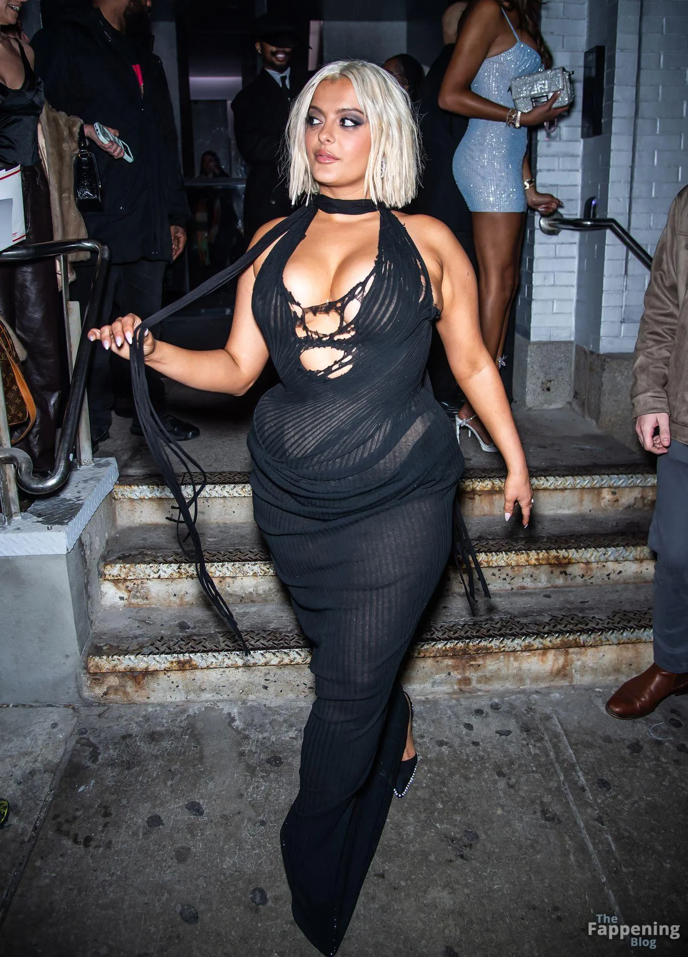 Bebe Rexha flaunts her sexy boobs and booty, wearin’ a sheer cutout Christian Cowan gown at NYFW 2026