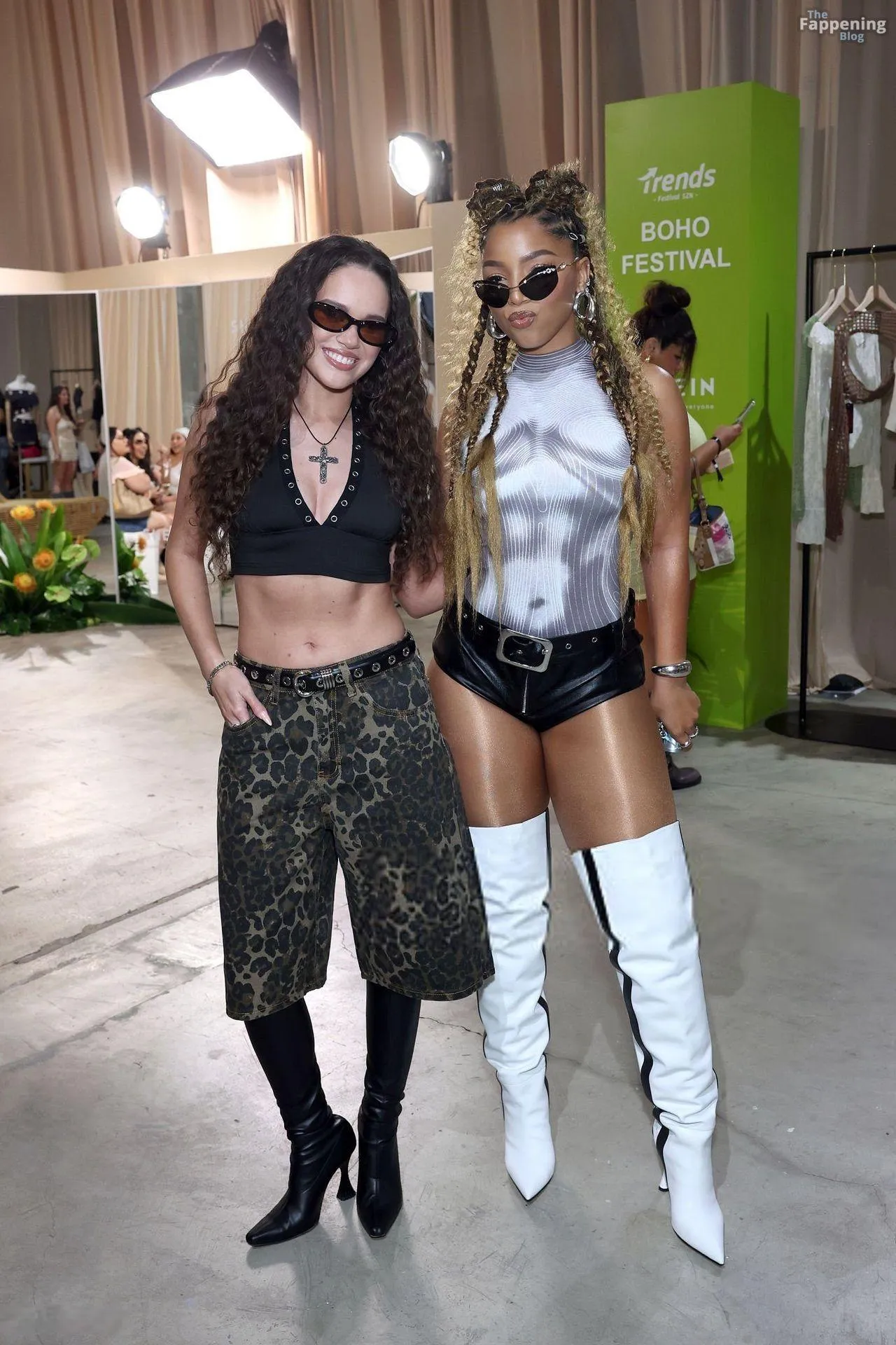 Singer and actress Chloe Bailey shows off her sexy figure, wearing leather shorts, boots and a tight bodysuit at the SHEIN Festival House Pop-Up.