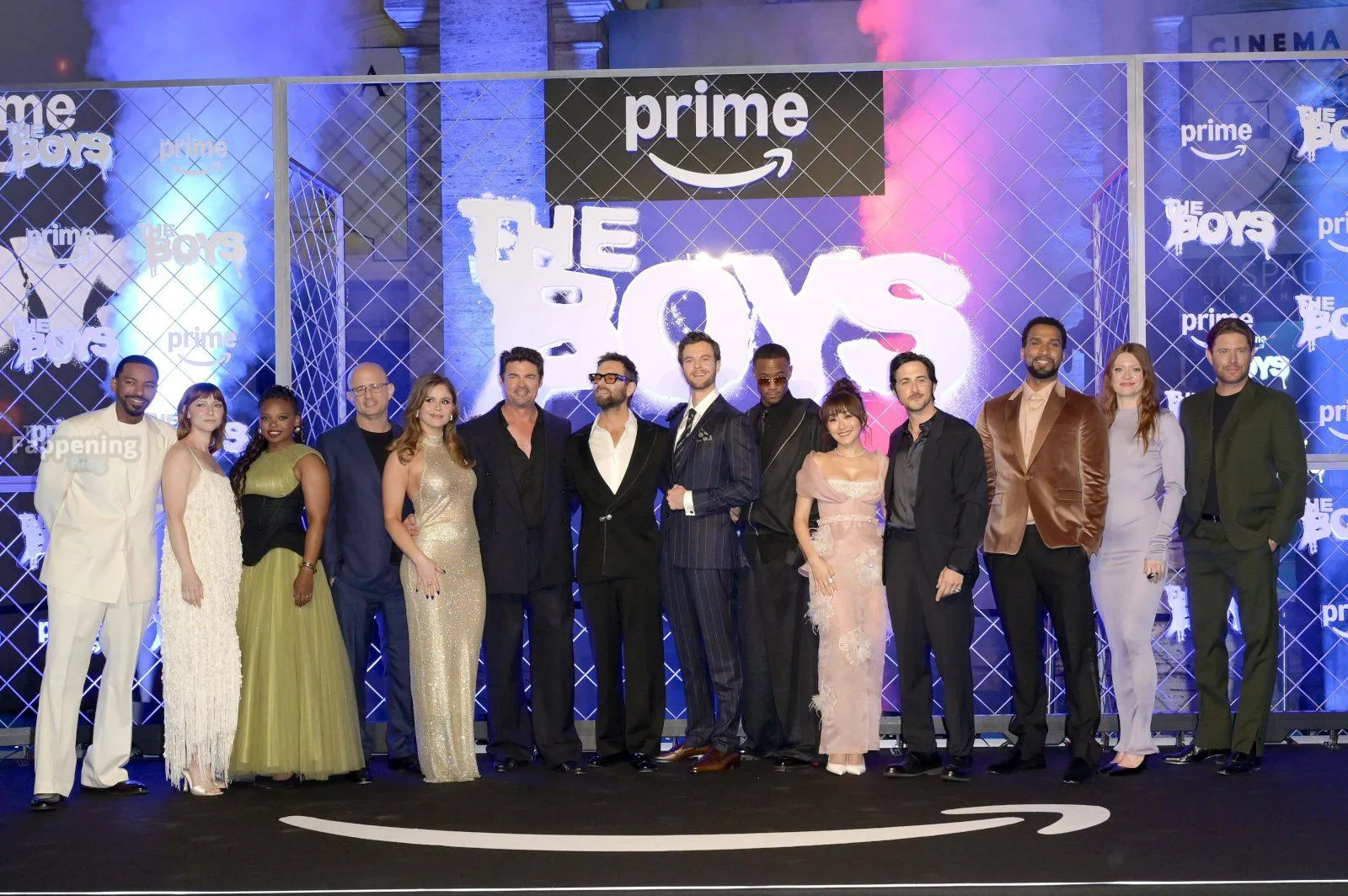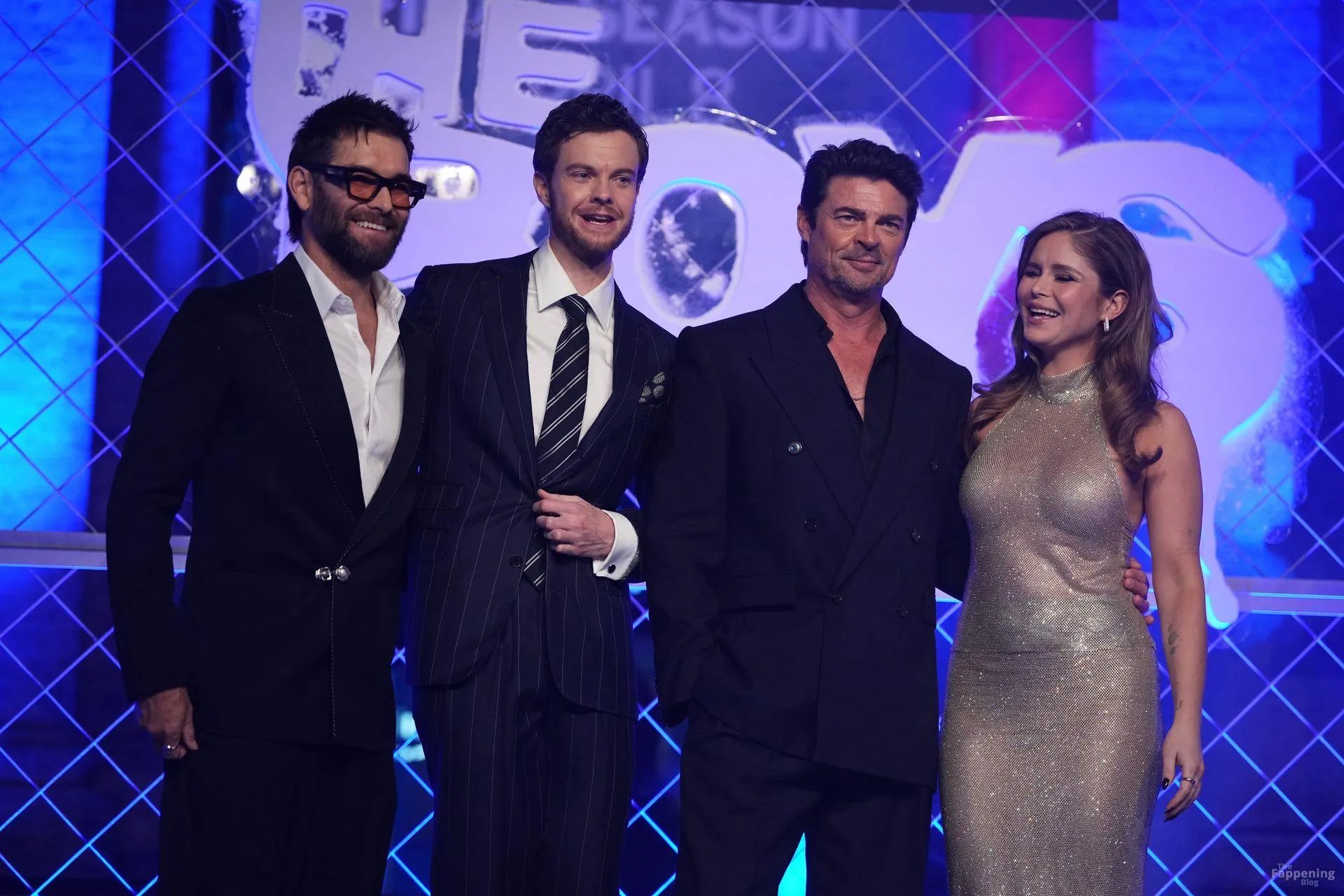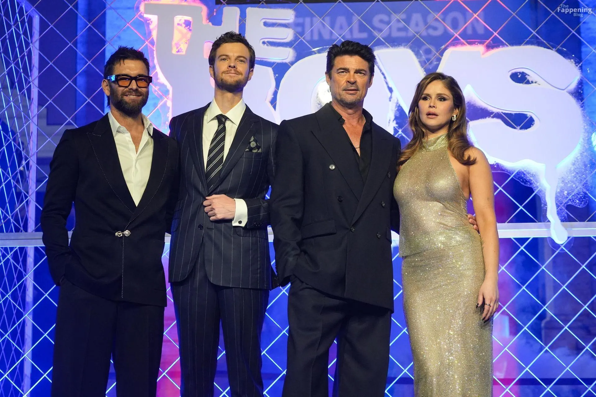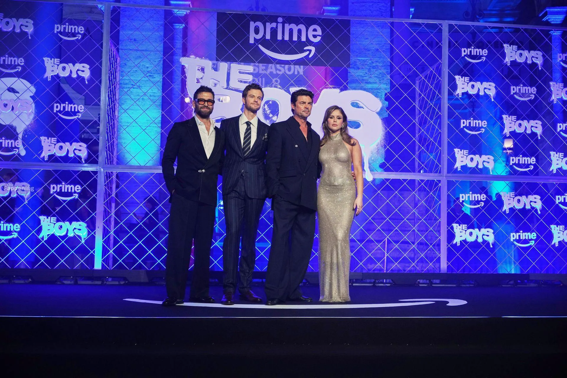 Actors Antony Starr, Jack Quaid, Karl Urban, Erin Moriarty are pictured on the carpet of the world premiere of the Prime TV series The Boys 5 final season at the cinema The modern space in Rome.