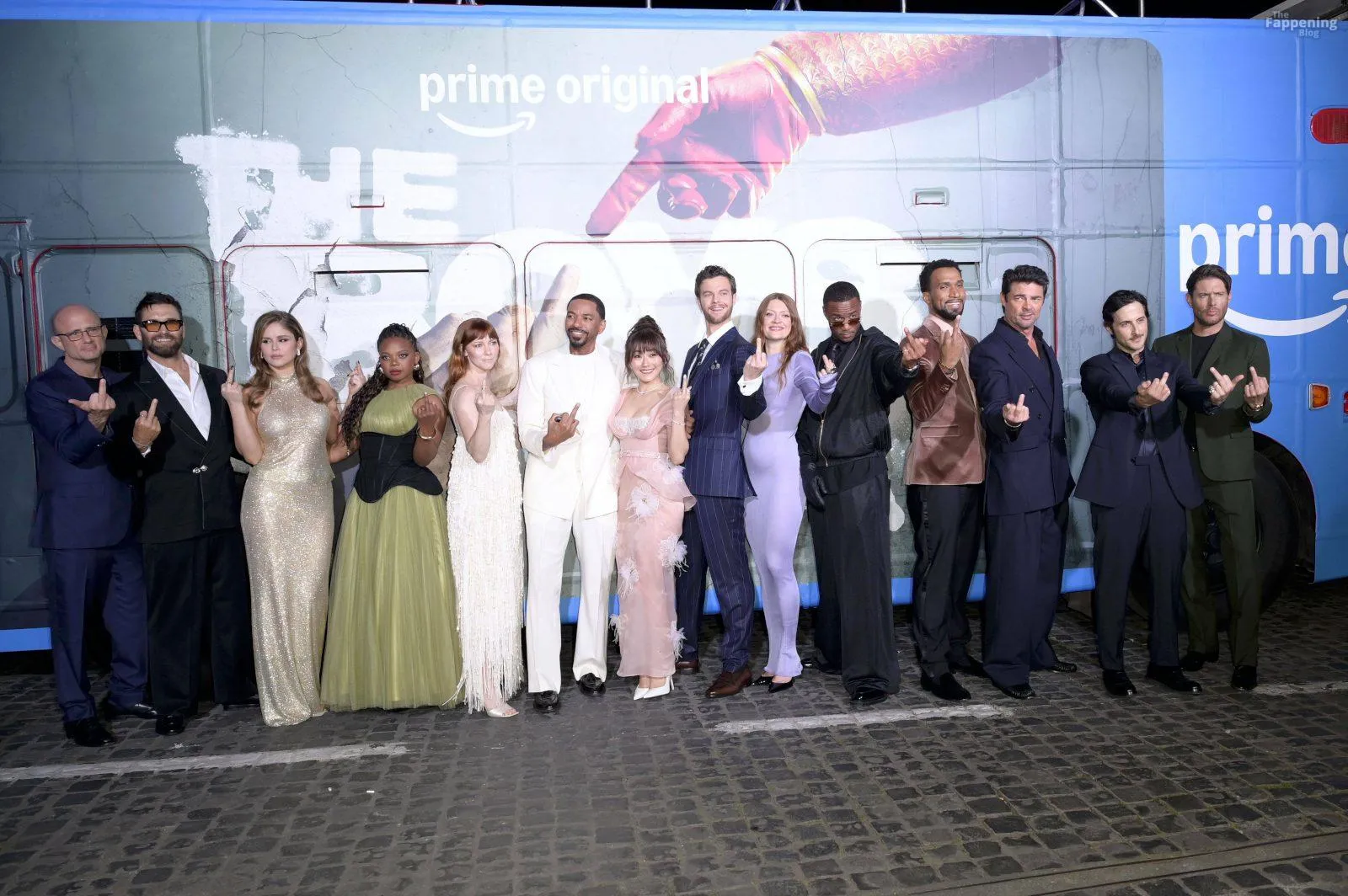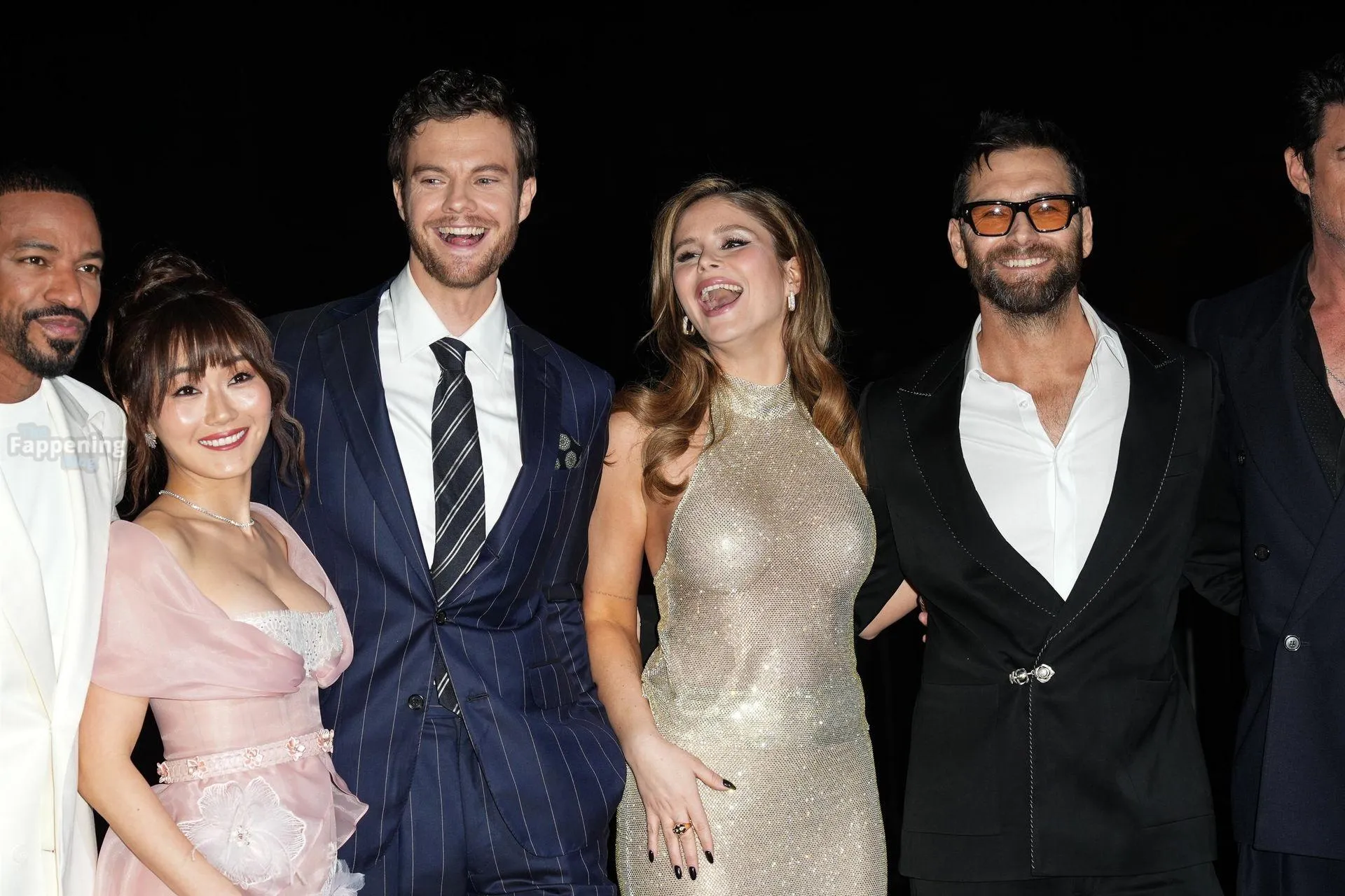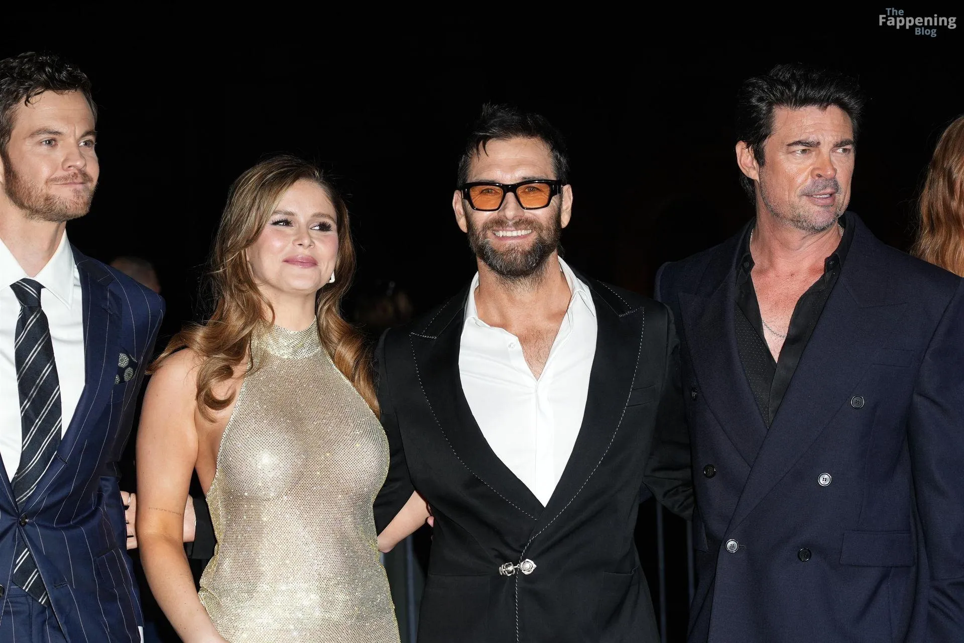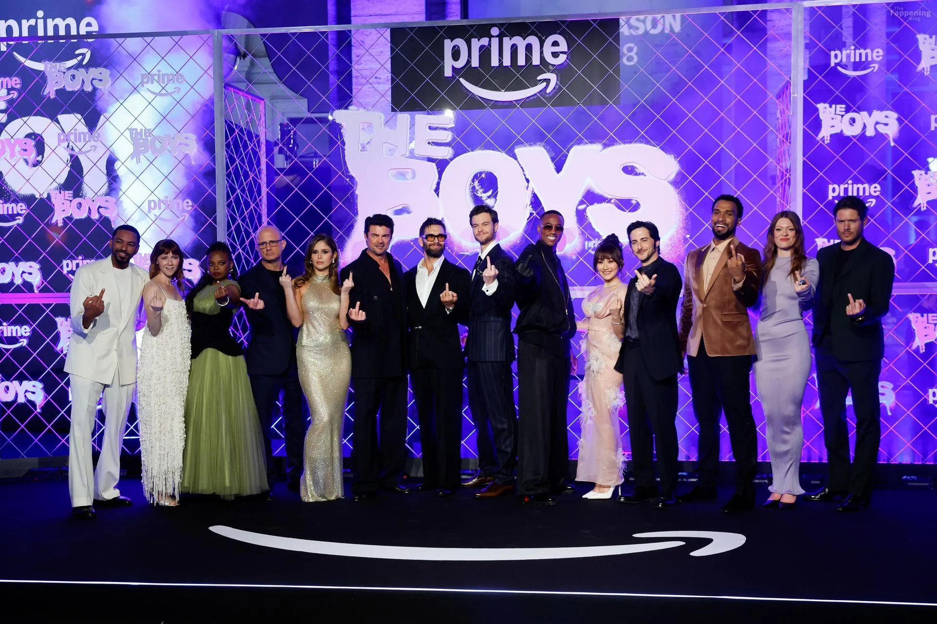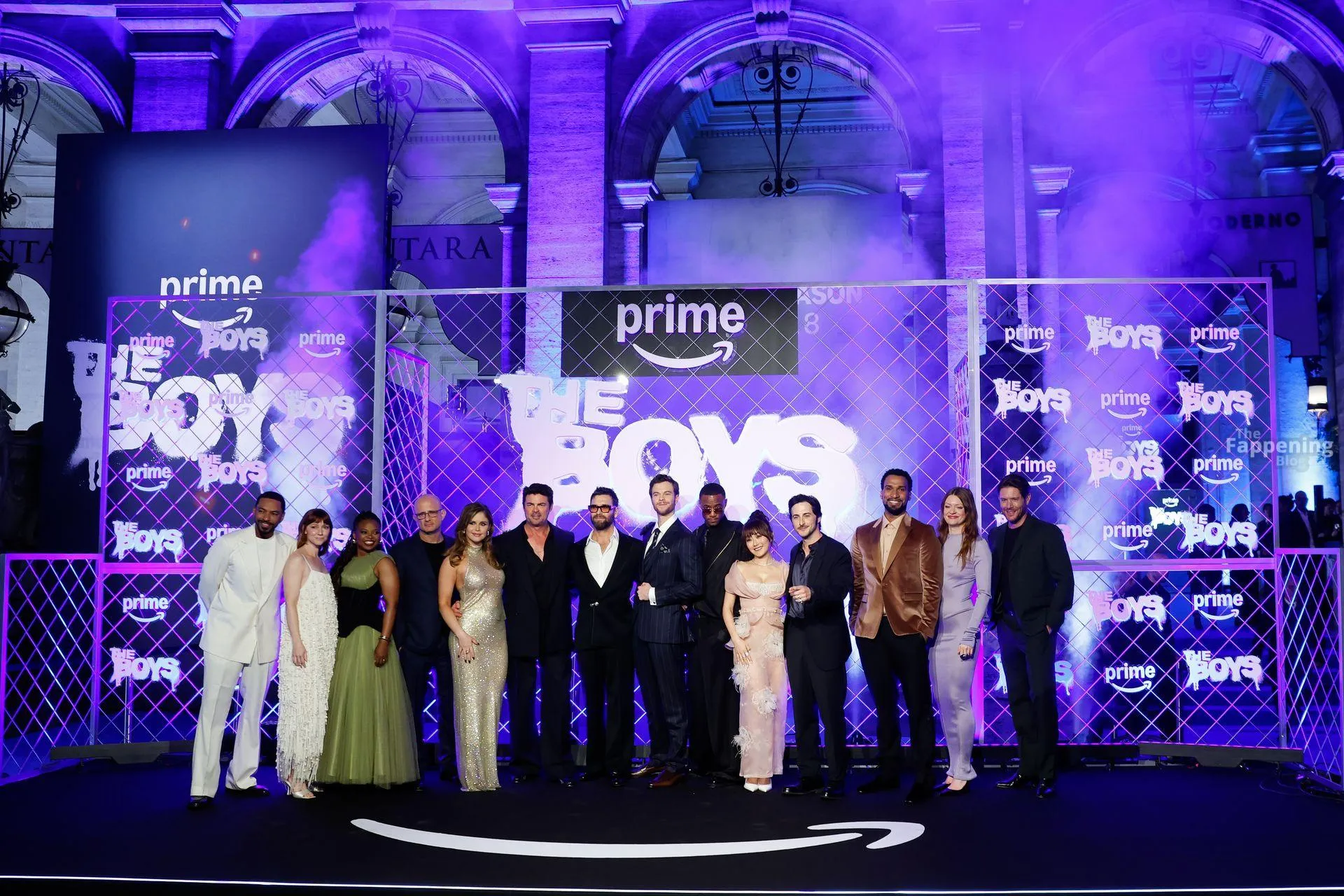 Actors Antony Starr, Jack Quaid, Karl Urban, Erin Moriarty are pictured on the carpet of the world premiere of the Prime TV series The Boys 5 final season at the cinema The modern space in Rome.