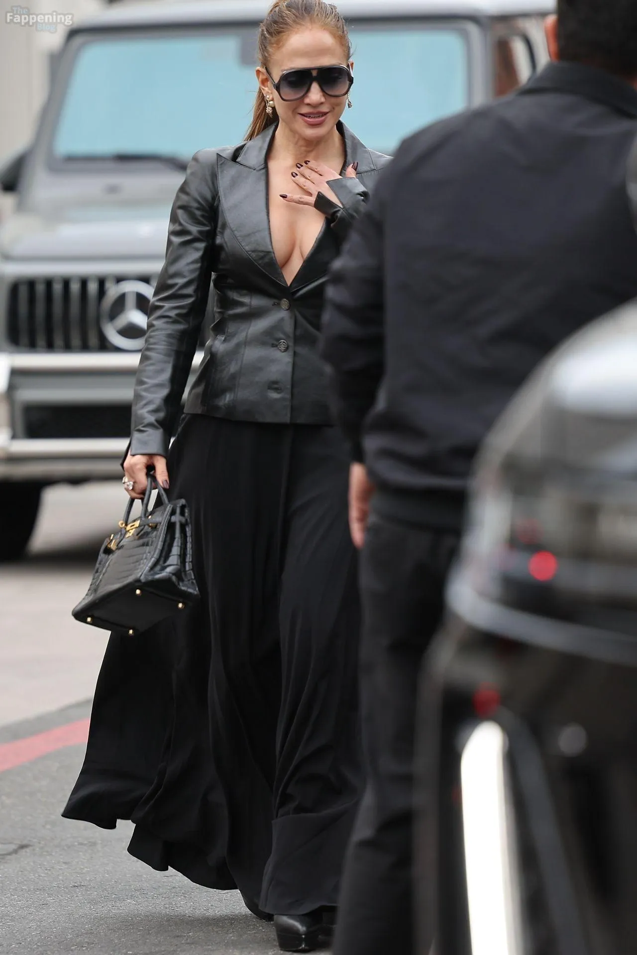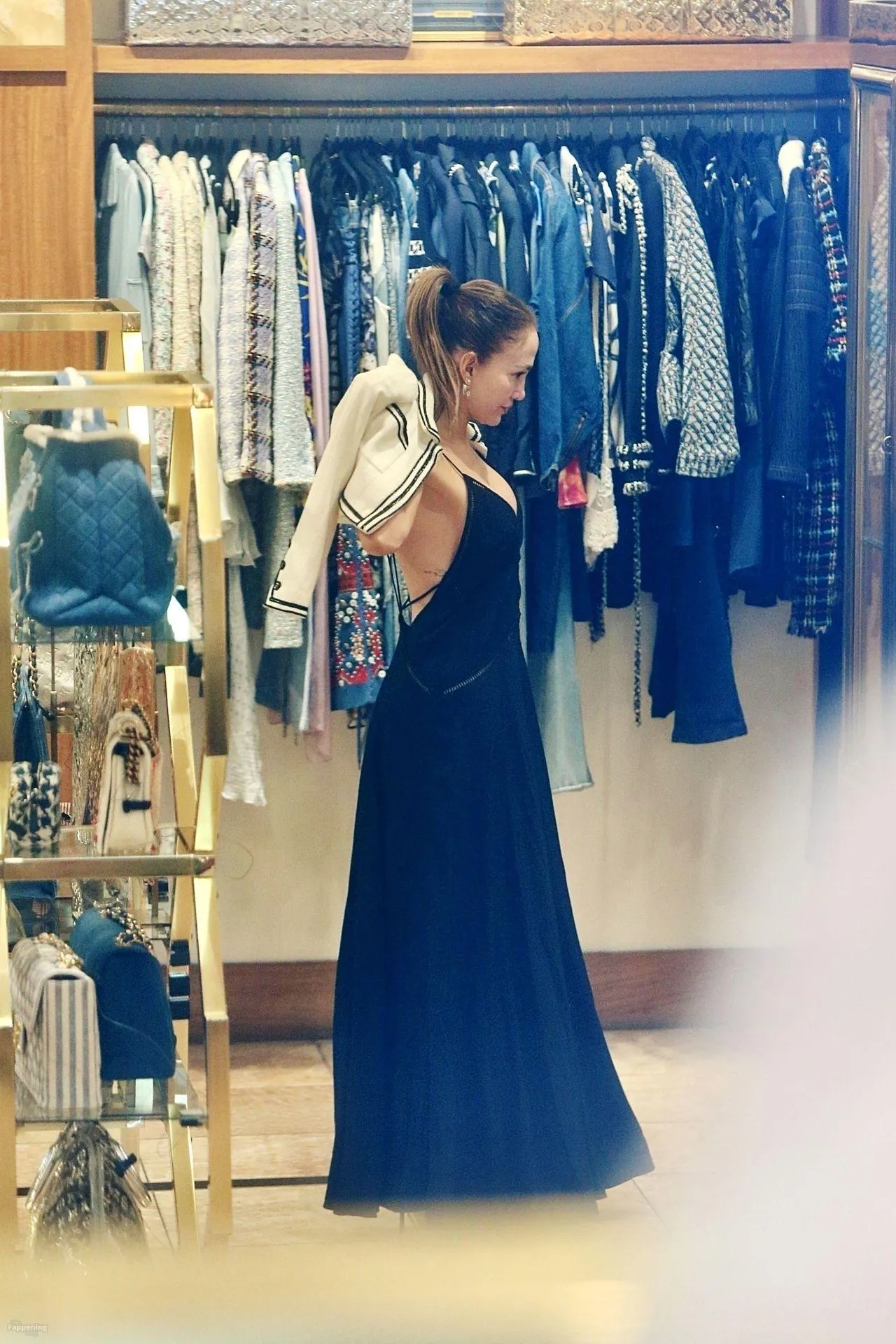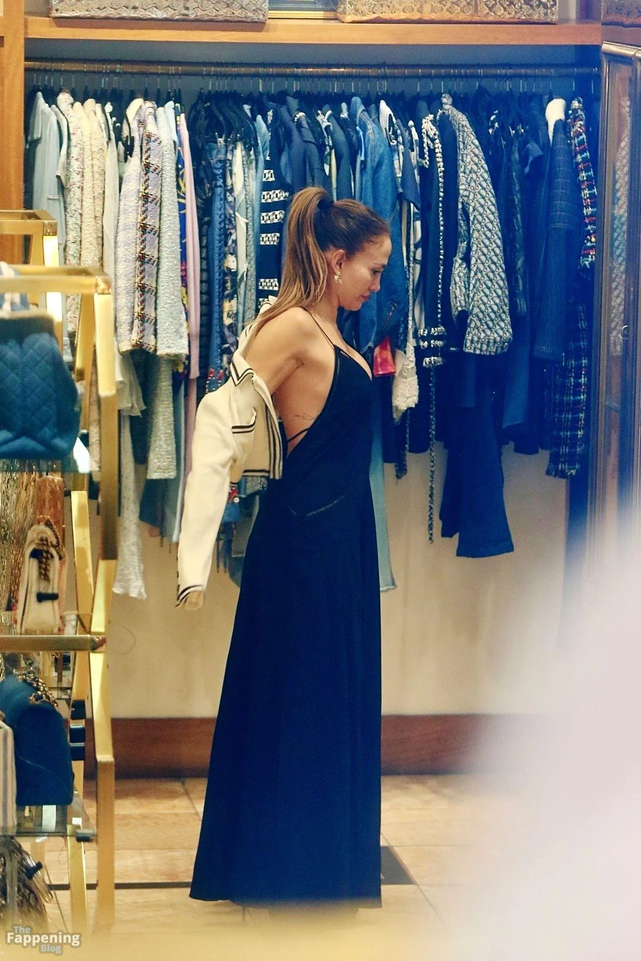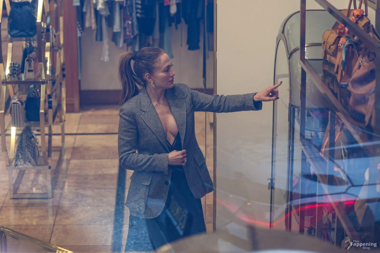 Jennifer Lopez was spotted in Beverly Hills shopping at What Goes Around Comes Around, browsing the luxury vintage store’s designer collection. The singer flashed her nude tit here!