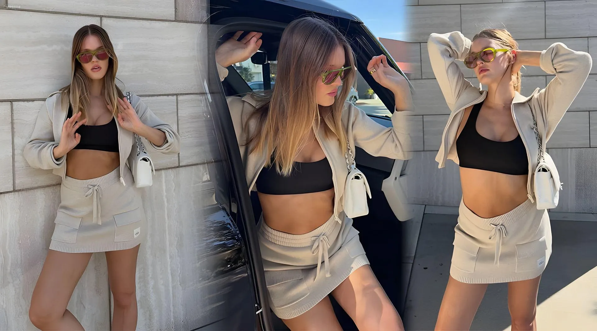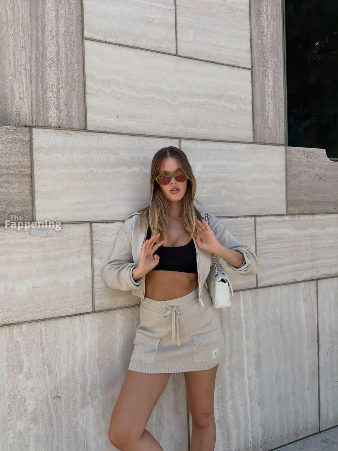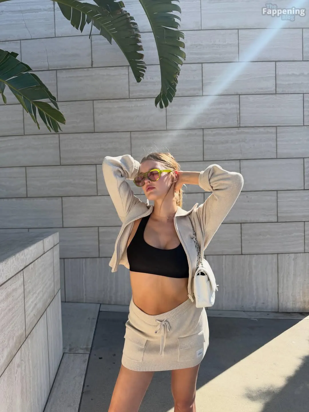 Joy Corrigan Shows Off Her Slender Figure in a New Alo Skirt and Black Bra (10 Photos)