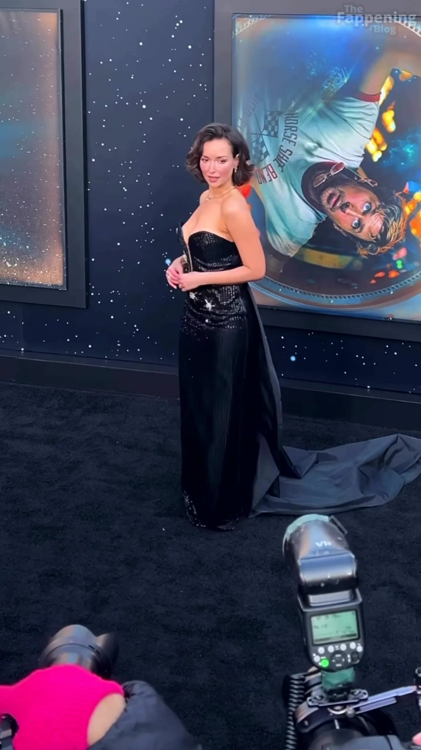 Milana Vayntrub made a striking appearance at the Project Hail Mary premiere in New York City, showcasing elegant red‑carpet style. The actress wore a strapless black gown adorned with sparkling sequins, featuring a deep neckline and a high slit. Check out some screenshots and videos from her social media account.